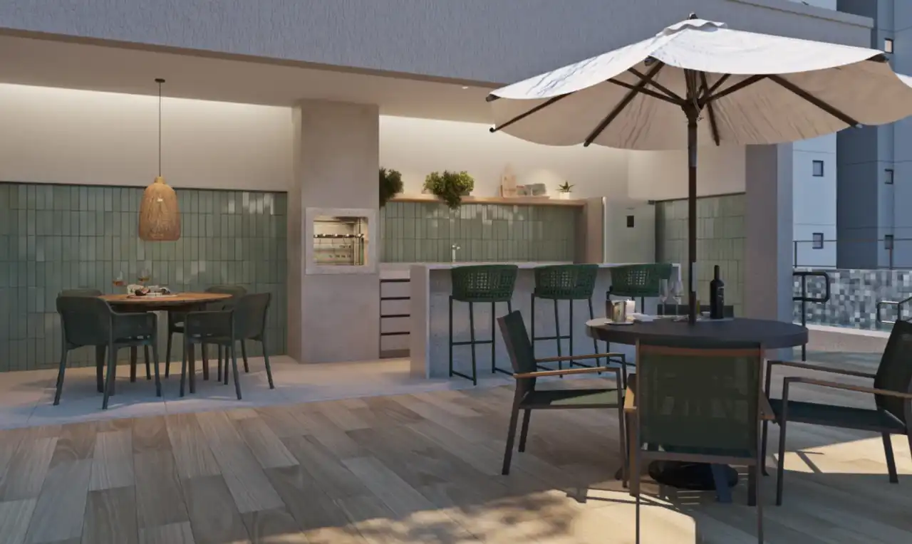 O imóvel tem 2 quartos, sendo 1 suíte, e 1 vaga de garagem.