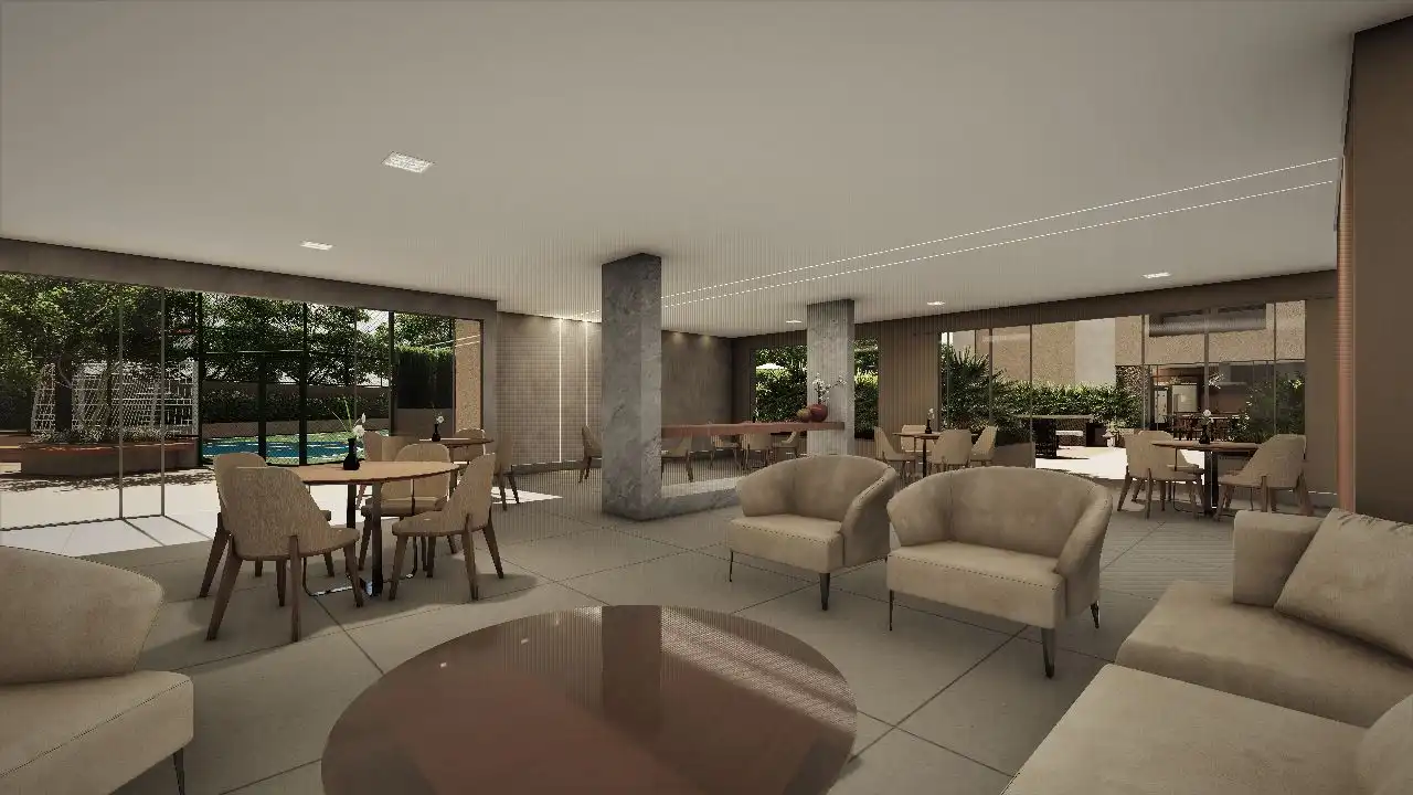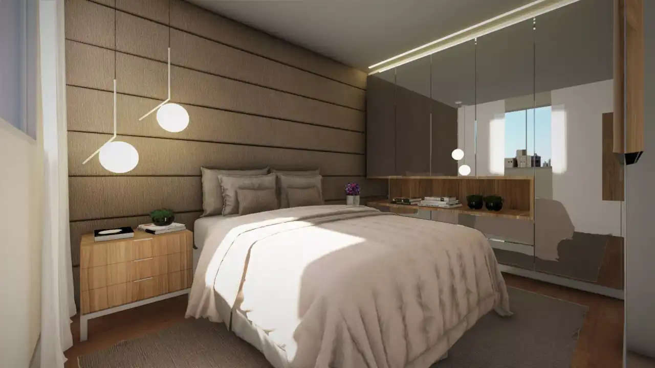 O imóvel tem 2 quartos, sendo 2 suítes, e 2 vagas de garagem.