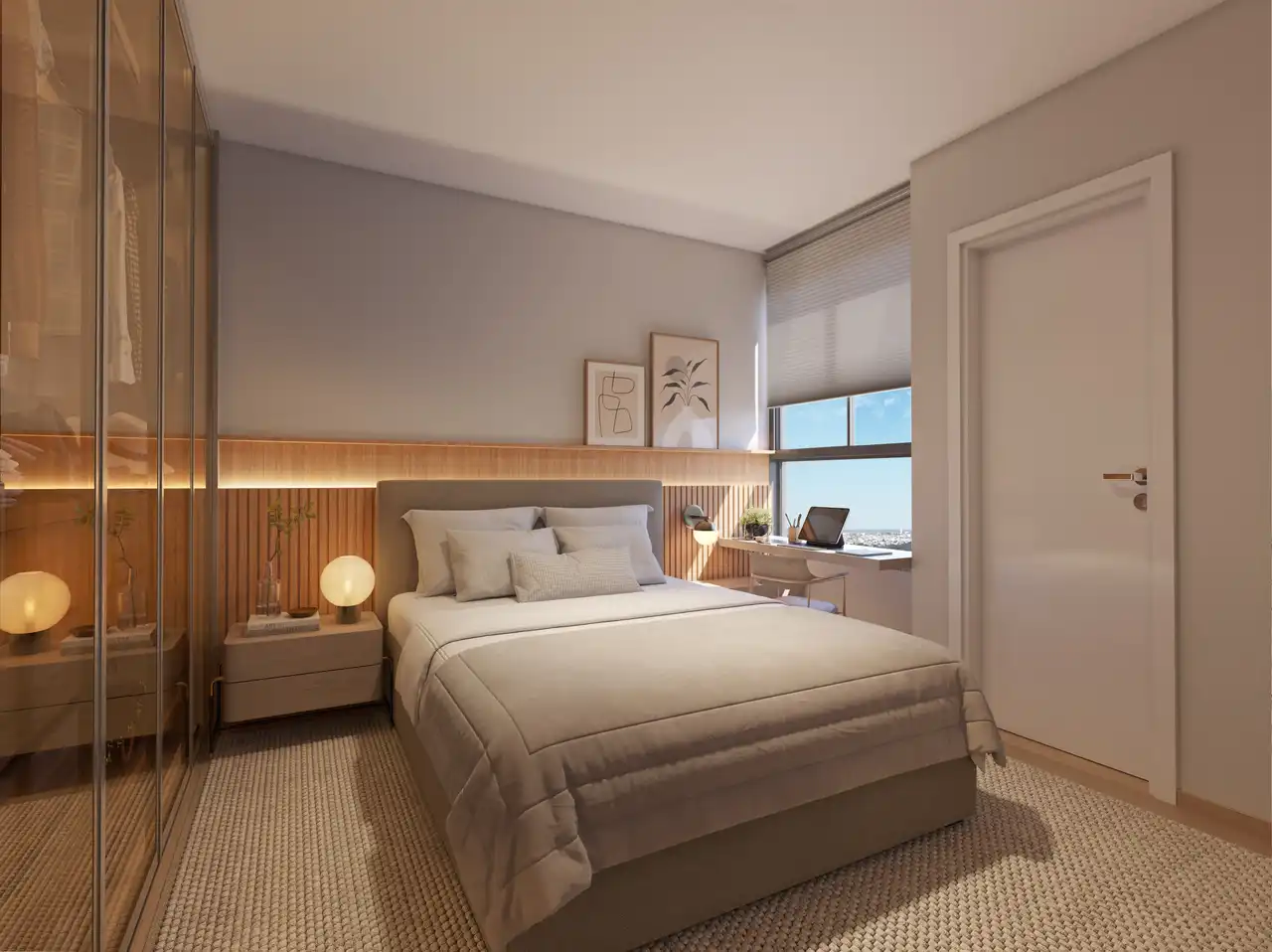 O imóvel tem 3 quartos, sendo 1 suíte, e 2 vagas de garagem.