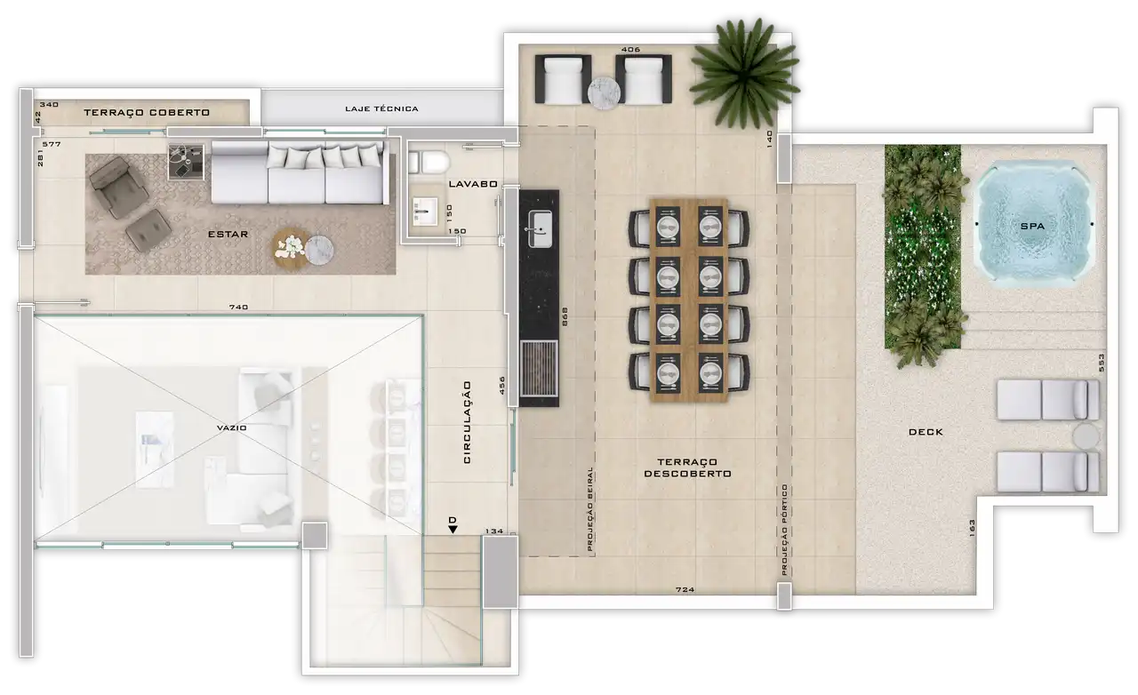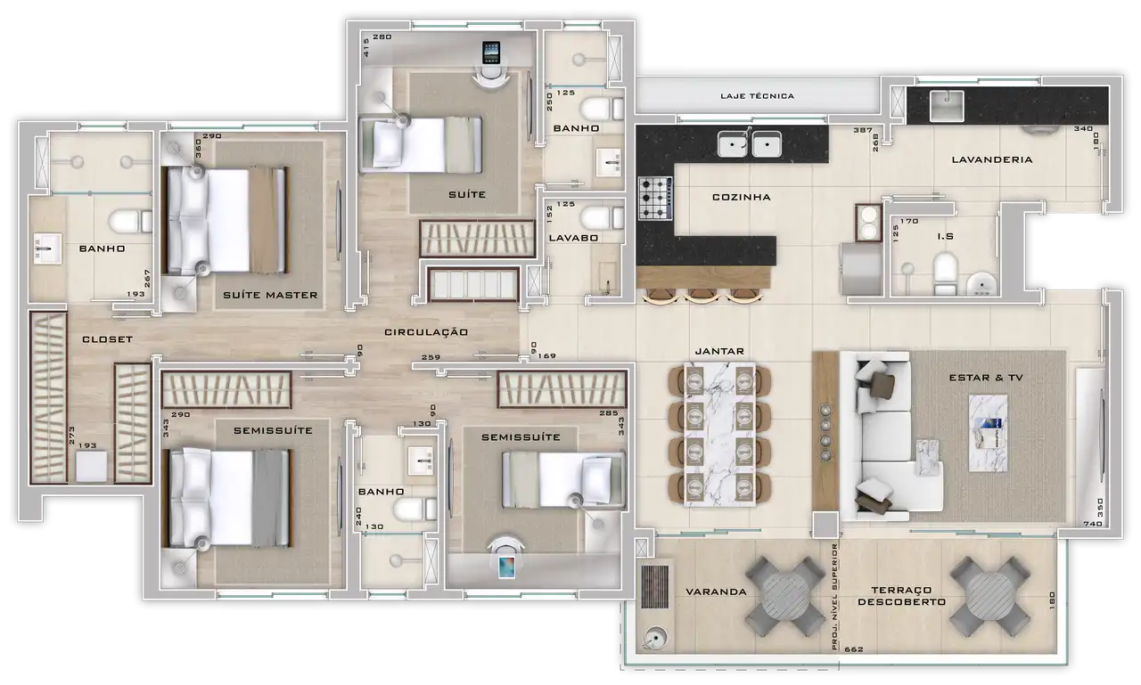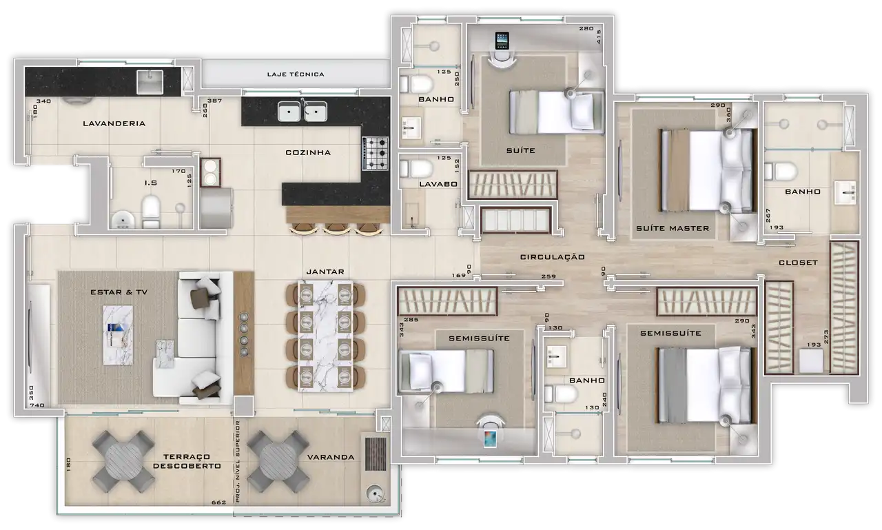 Área total de 136,72m² e 136,72m² de área útil.