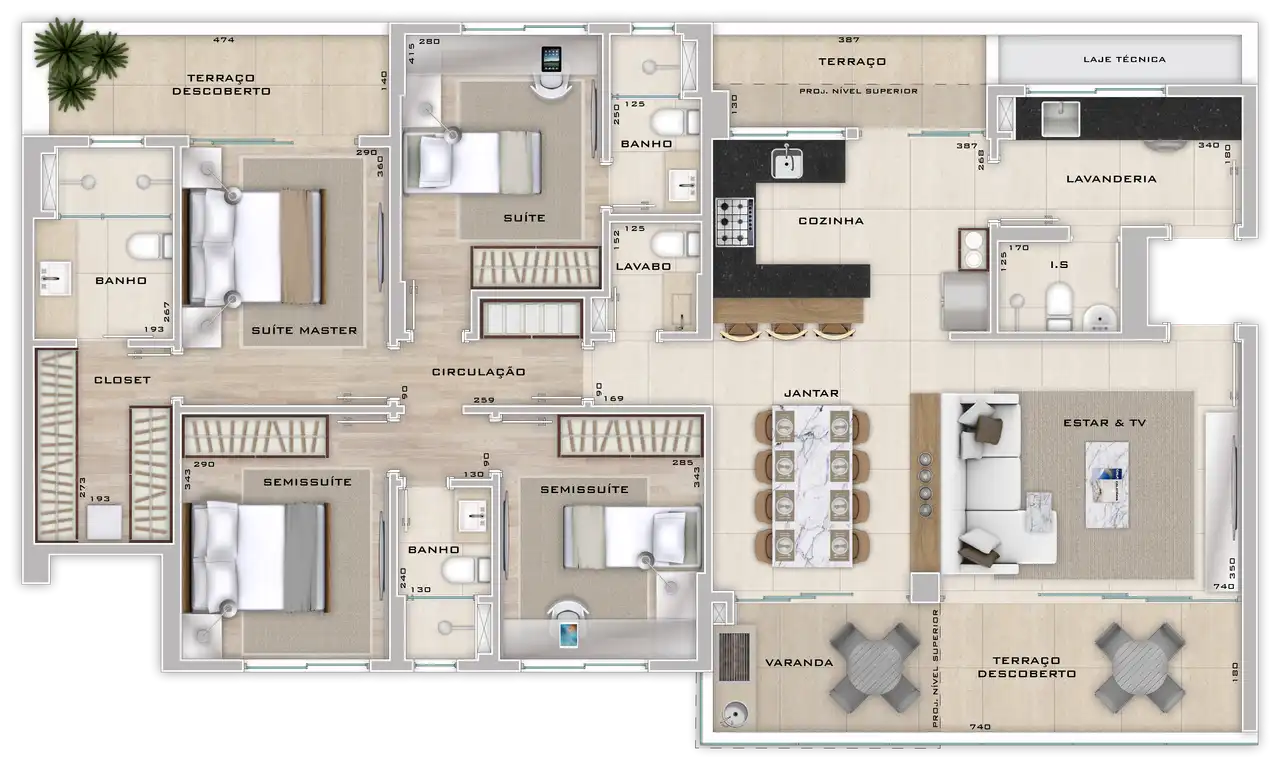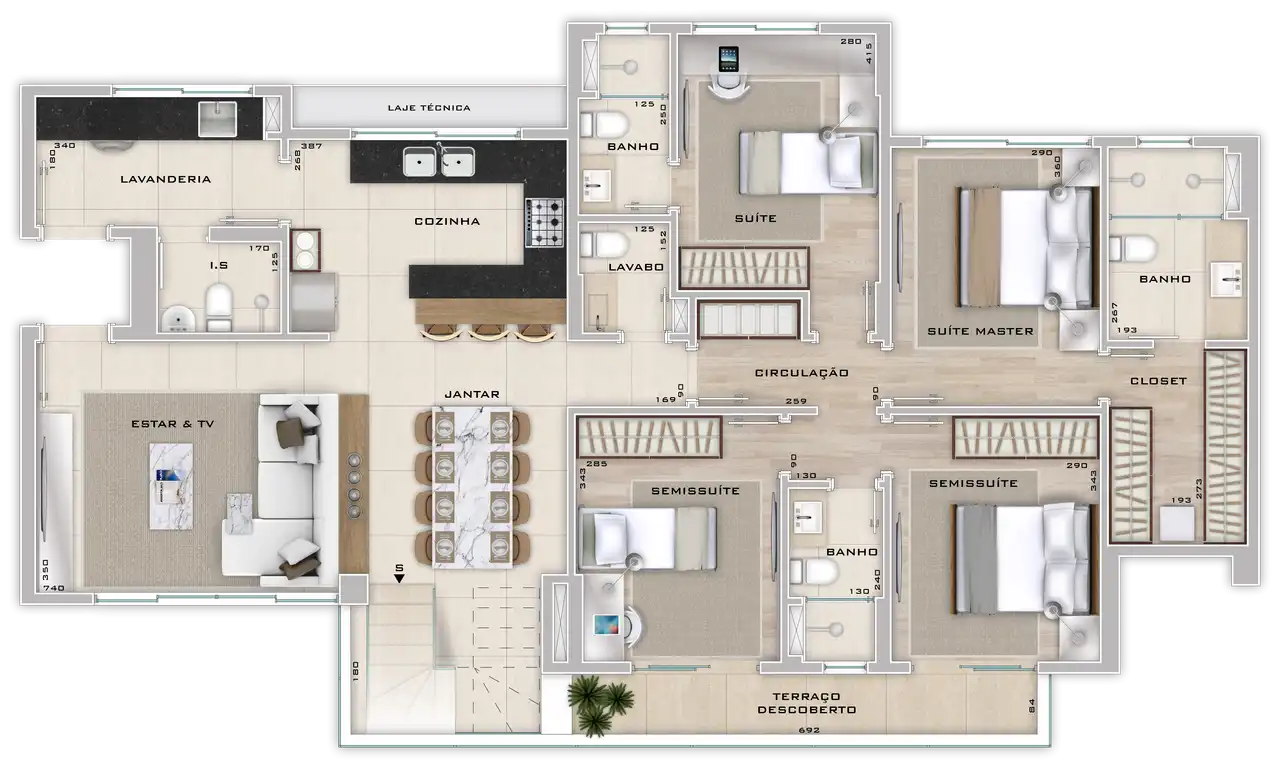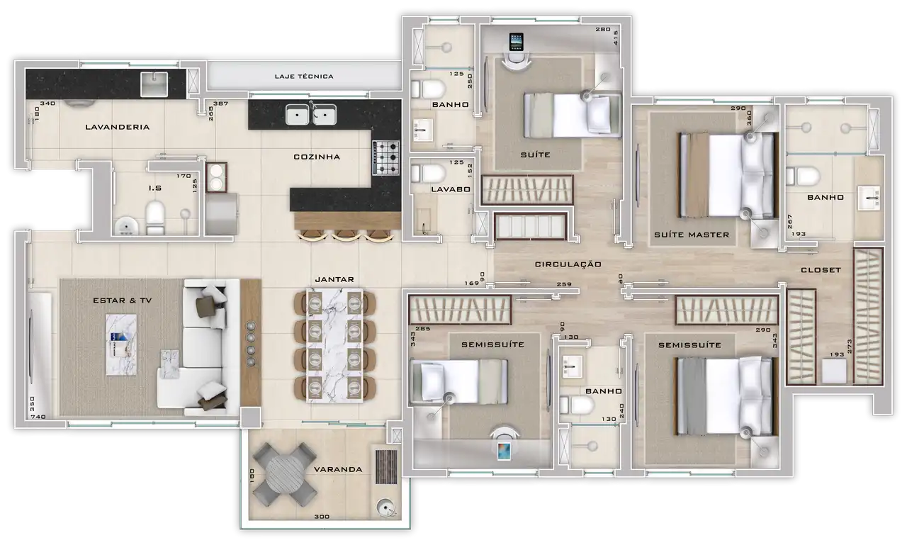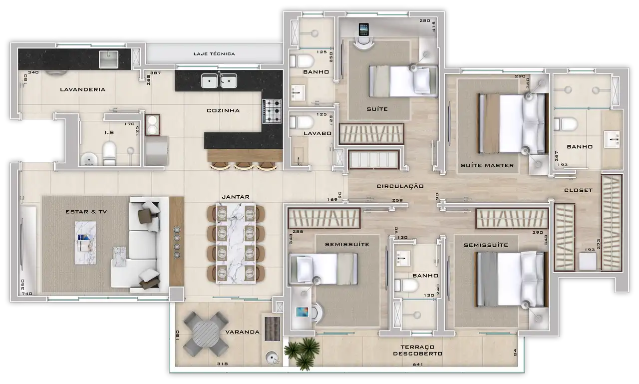 Área total de 136,72m² e 136,72m² de área útil.