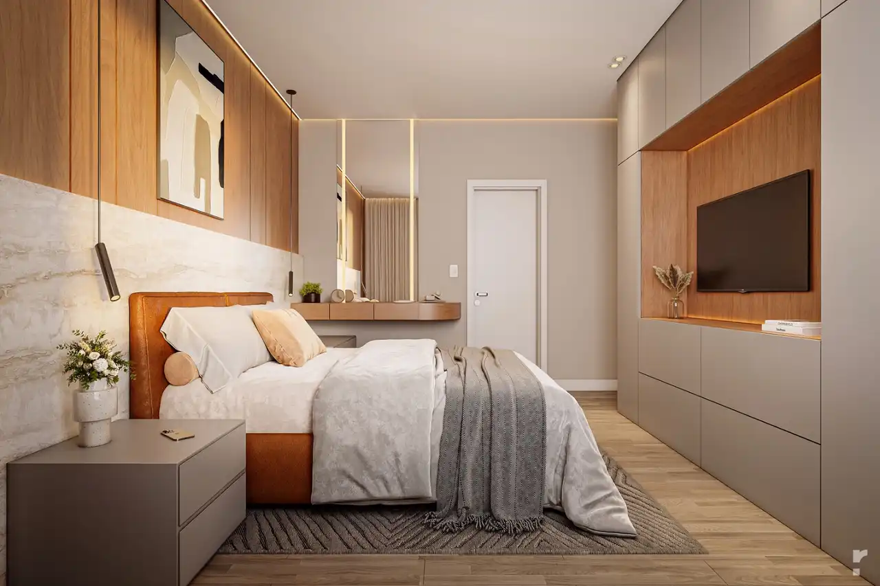 O imóvel tem 3 quartos, sendo 1 suíte, e 3 vagas de garagem.