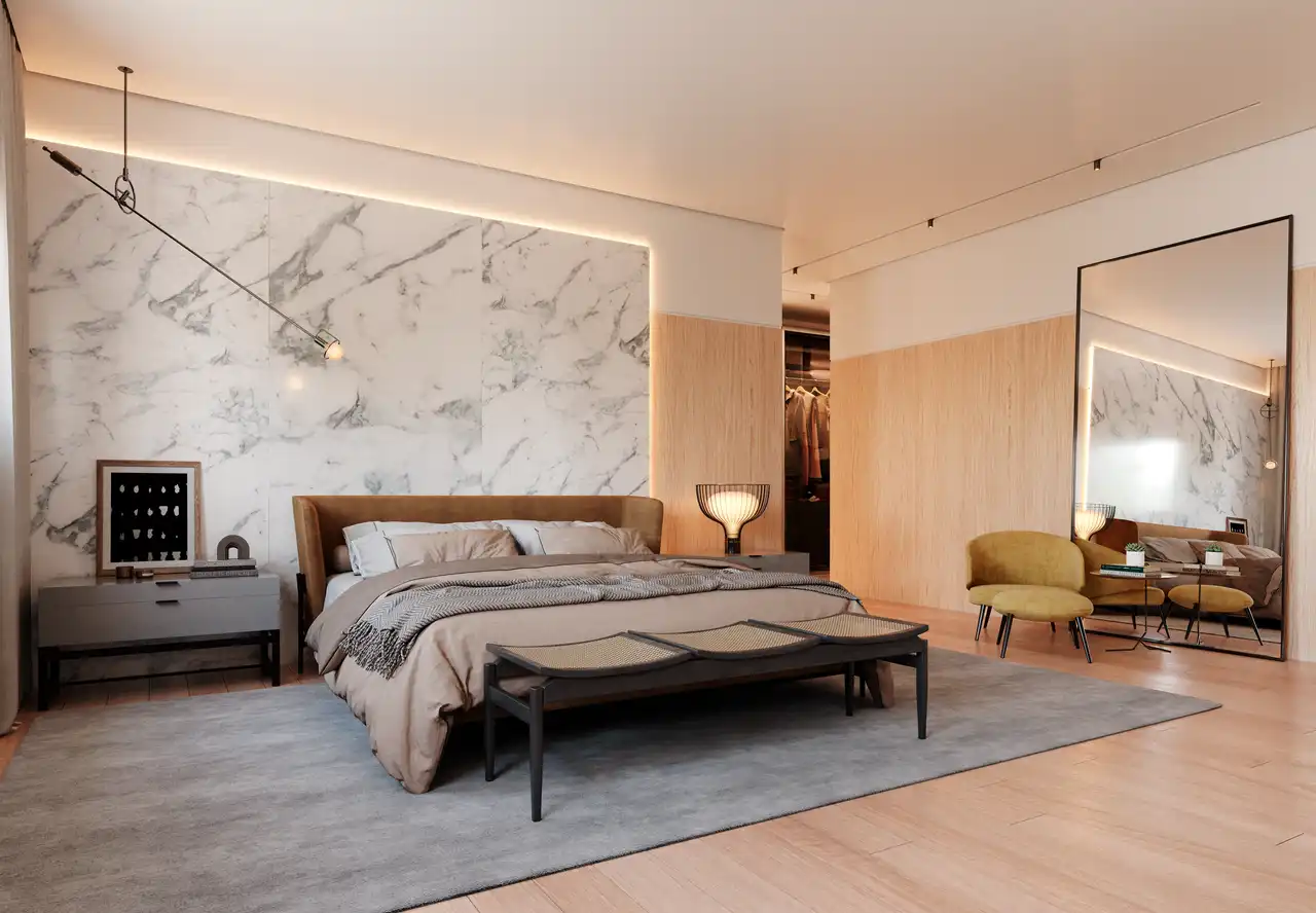 O imóvel tem 4 quartos, sendo 3 suítes, e 5 vagas de garagem.