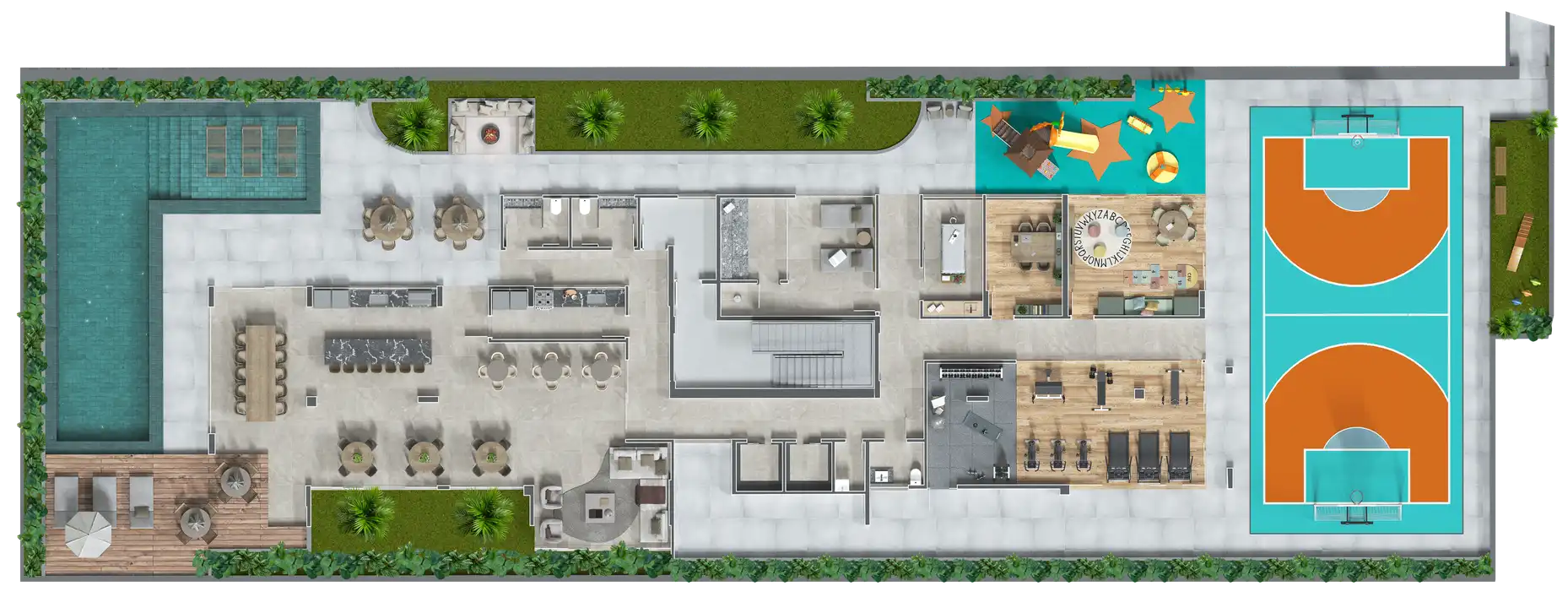Área total de 414,02m² e 297,22m² de área útil.