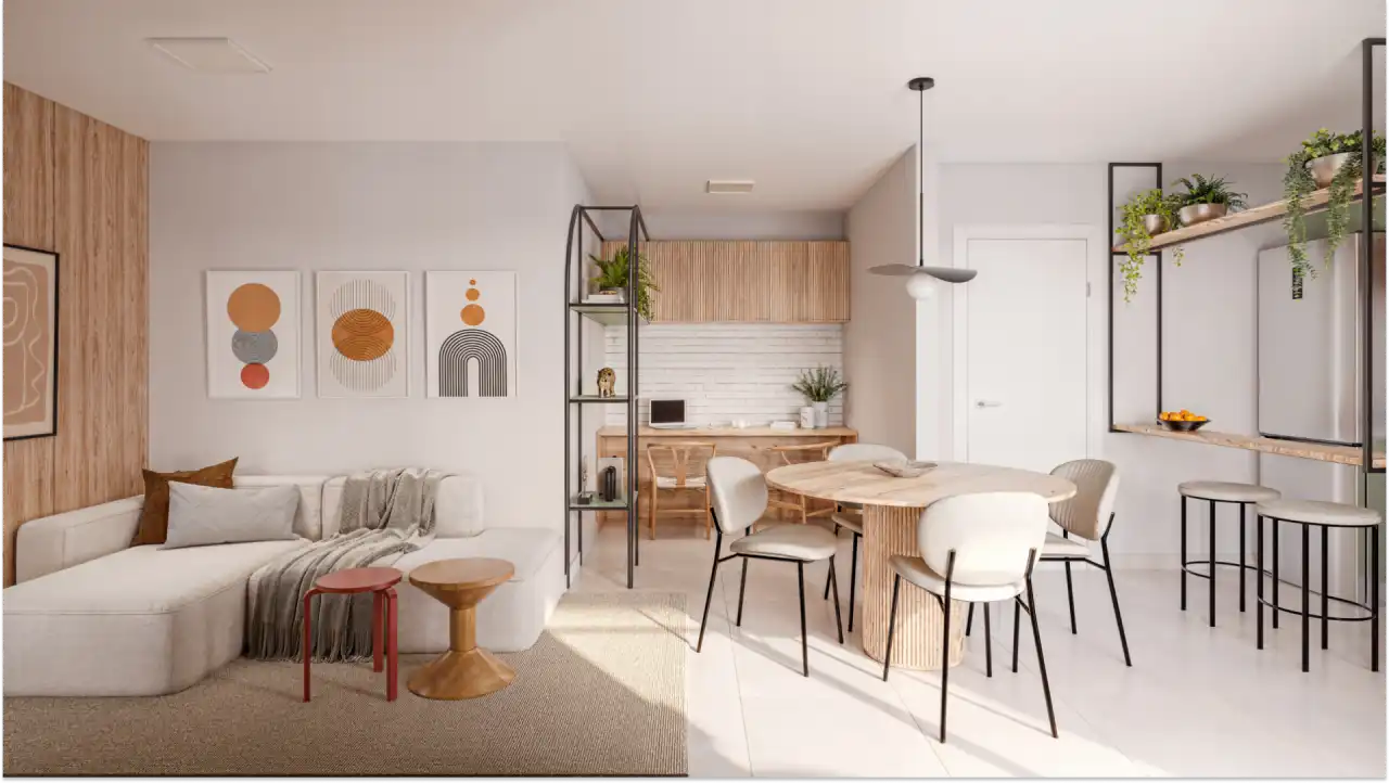 O imóvel tem 3 quartos, sendo 1 suíte, e 2 vagas de garagem.